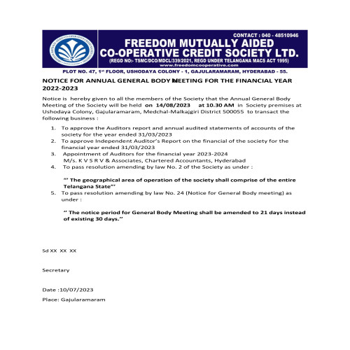 An eminent Academician, retired senior Officers of SBI, ex. Indian Air Force (Defence) personnel, practising Chartered Accountant, Engineers and one self employed business person, formed as a team and promoted FREEDOM MUTUALLY AIDED CO-OPERATIVE CREDIT SOCIETY LIMITED with an aim to extend banking facilities to all income groups with focused attention on low & middle income groups from different sections of the society, retirees, pensioners to enhance their thrift habit and getting highest rewards on their savings (when compared to our peers and other banks) for their financial growth without any impediments. We as a team promise to provide personalised and prompt customer service and assure safety and security to the monies deposited with us.
